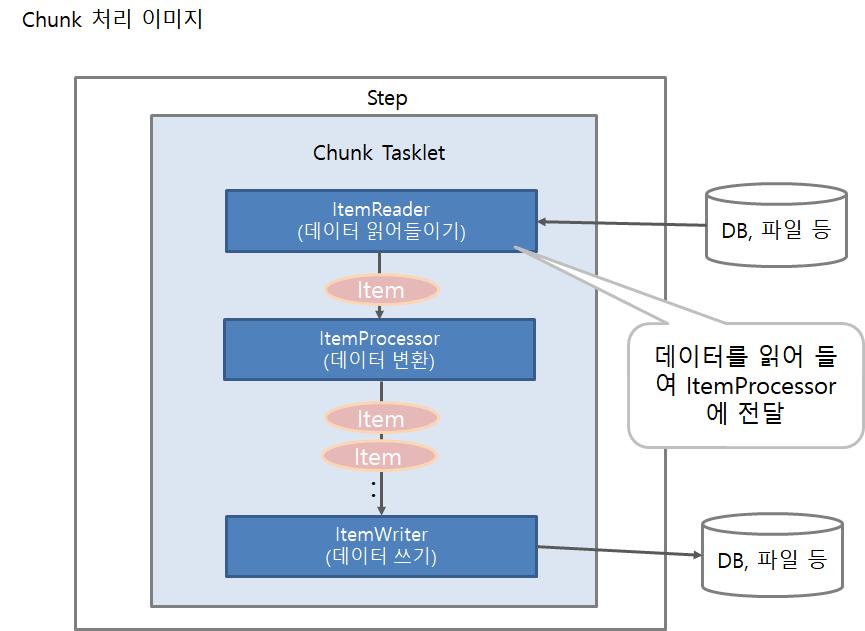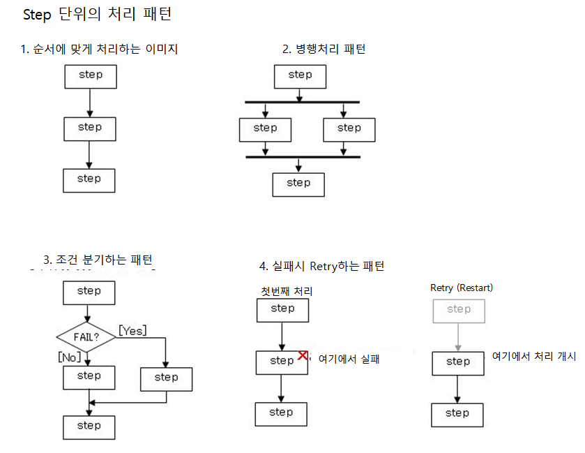 배치 처리를 구성하는 최소단위의 요소. Step은 크게 2종류의 모델로 분류할 수 있다.